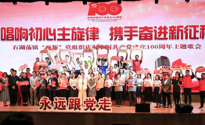 6月6日下午,为庆祝中国共产党成立100周年,进一步激发“两新”党组织的凝聚力和号召力,展现“两新”党员爱党爱国热情,由石湖荡镇综合党委主办的“唱响初心主旋律 携手奋进新征程”—— “两新”党组织庆祝中国共产党成立100周年主题歌会在镇社区文化活动中心大剧场举行。